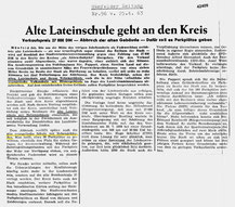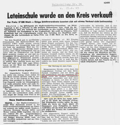 Auf dem Foto um 1948/50 sieht man rechts die alte Lateinschule in der Lindenstraße, links von ihr ist ein Teil eines flachen Nebengebäude zu erkennen, welches dieser Anbau sein muss, der als Lager für die Unterbringung der Zwangsarbeiter 1944/45 diente. Der Anbau könnte zwischen 1939 und 1944 erstellt worden sein, als die Lateinschule stufenweise zur Mittelschule umgebaut wurde, was rasch steigende Schülerzahlen und große Raumnot zur Foge hatte.